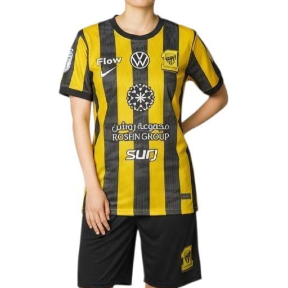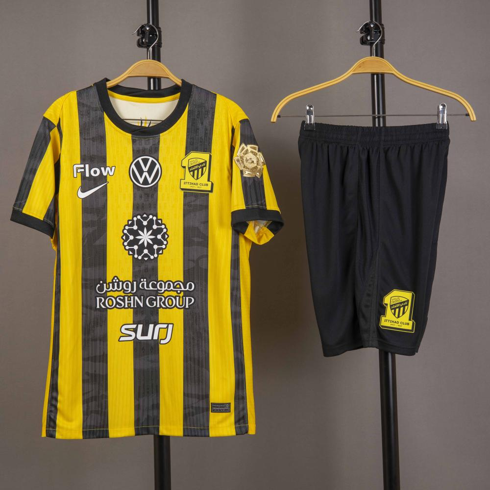 - ألوان طقم الاتحاد 2026 الأصفر المخطط بالأسود تمثل هوية الاتحاد الرسمية بأناقة واضحة.